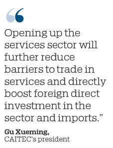 "There is a synergistic relationship between the opening of the services sector and trade in services. Opening up the services sector will further reduce barriers to trade in services and directly boost foreign direct investment in the sector and imports," Gu said.