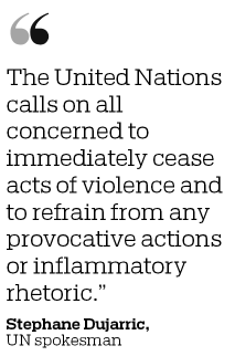 "The United Nations calls on all concerned to immediately cease acts of violence and to refrain from any provocative actions or inflammatory rhetoric," Dujarric said.