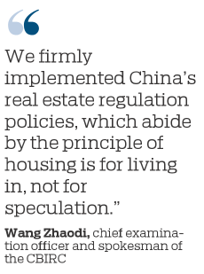 Wang Zhaodi, chief examination officer and spokesman of the CBIRC, said:"We firmly implemented China's real estate regulation policies, which abide by the principle of housing is for living in, not for speculation."