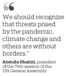 Abdulla Shahid, president of the 76th session of the United Nations General Assembly, highlighted the significance of South-South cooperation, especially when the world faces extreme poverty and chronic hunger exacerbated by the impacts of climate change and COVID-19.