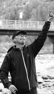 Where the banks run directly to the water, he runs down, takes out his fishing rod and moves cautiously among the rocks and swift currents, casting his line back and forth.