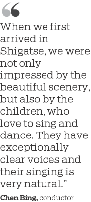Children living in remote areas should have the opportunity to enjoy music and to be actively involved with it, Wang said, adding, "They can have a lot of creative fun by singing together."