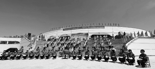 In May, 100 students and teachers from the county taught by Peng formed a percussion band and gave an outdoor performance near the Yellow River.