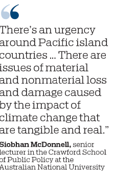 "There's an urgency around Pacific island countries; this is not just an issue of adaptation. There are issues of material and nonmaterial loss and damage caused by the impact of climate change that are tangible and real," McDonnell said.