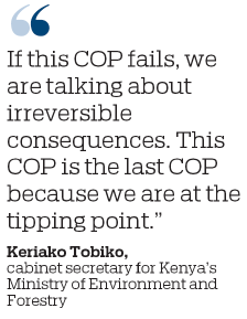 "If this COP fails, we are talking about irreversible consequences. This COP is the last COP because we are at the tipping point. And this is the COP that will either save humanity and the planet from irreversible consequences, or not."