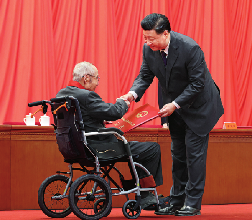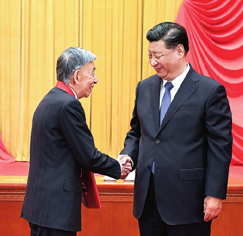 Xi, who is also general secretary of the Communist Party of China Central Committee, conferred the State Preeminent Science and Technology Award on the two academicians during a grand ceremony at the Great Hall of the People in Beijing.