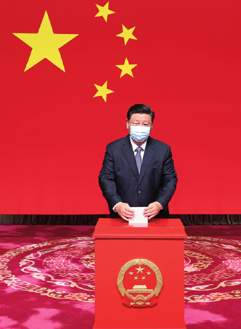 Xi, who is also general secretary of the Communist Party of China Central Committee and chairman of the Central Military Commission, cast his vote for people's congress deputies at a polling station in the Zhongnanhai electoral district in the capital's Xicheng district.
