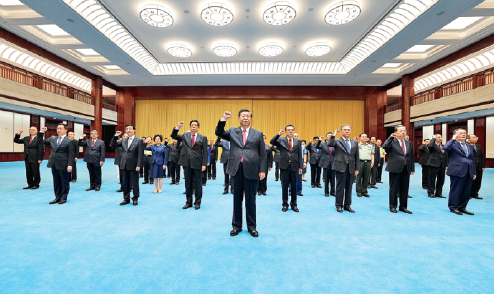 After concluding their exhibition tour, Xi and his colleagues took a vow in front of the Party flag, reliving a ritual undertaken by all new CPC members.