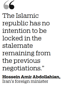 "The Islamic republic has no intention to be locked in the stalemate remaining from the previous negotiations," he said, calling for "effective and verifiable removal of sanctions and the return of the opposite sides to their full obligations" for the progress of the talks.