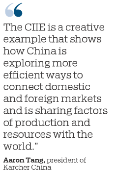 "In the context of world economic recovery, the significance of the CIIE goes far beyond buying a certain amount of foreign goods and services," said Aaron Tang, president of Karcher China, a German company that makes and sells cleaning equipment.