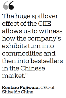 "The huge spillover effect of the CIIE allows us to witness how the company's exhibits turn into commodities and then into bestsellers in the Chinese market," said Kentaro Fujiwara, CEO of cosmetics giant Shiseido China.