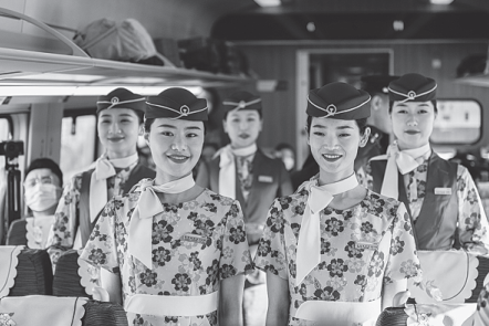 Li Bei, a train attendant on board for the trial run, said she and her colleagues have received training in diverse skills, including English and Lao for smoother communication with the passengers-as well as dancing.