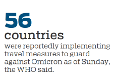 As of Sunday, 56 countries were reportedly implementing travel measures to guard against Omicron, the WHO said.