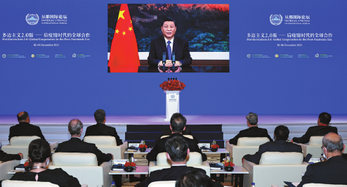 Xi delivered a speech via video at the opening ceremony of the 2021 Imperial Springs International Forum, which was held in Guangzhou, Guangdong province, with the theme "Multilateralism 2.0: Global Cooperation in the Post-Pandemic Era".