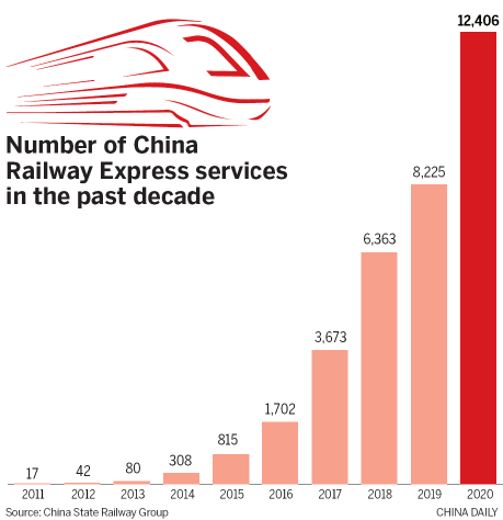 There were only 17 train services that year, a number that later expanded exponentially, exceeding 3,000 in 2017, 6,300 in 2018 and 12,400 in 2020 as more routes were launched linking Chinese and European cities.