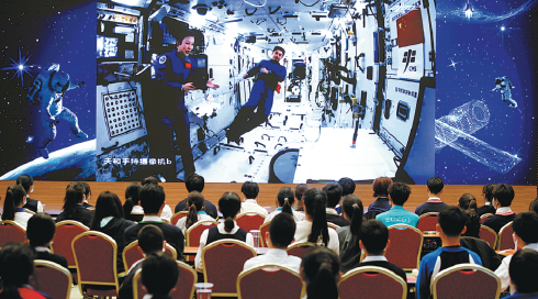 Tens of millions of primary and middle school students across China watched the hourlong televised event hosted by the China Manned Space Agency, the Ministry of Education and other government departments.
