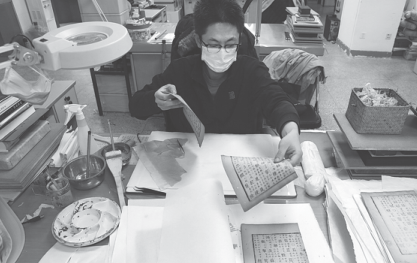 Each working day, he sits at a desk and focuses on handling ragged yet priceless pieces of paper in front of him. As one of 17 restorers of ancient books at the NLC, he shakes off centuries of old dust to renew the works he deals with.