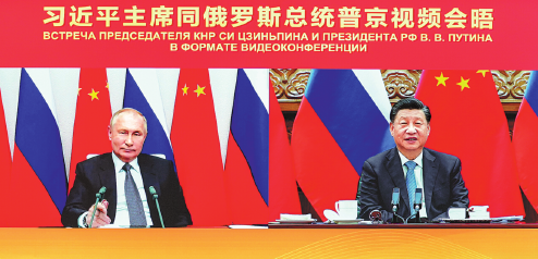 In their second virtual meeting this year, President Xi Jinping and Russian President Vladimir Putin pledged joint action to thwart any attempts to interfere in the domestic affairs and legitimate interests of both nations and to uphold international justice and fairness.