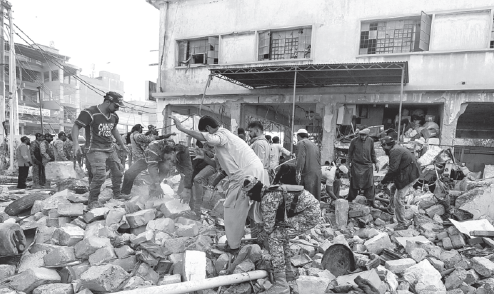 Rescue teams called in heavy machinery to remove the debris to look for anyone trapped.