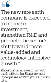 "The new rare earth company is expected to increase investment, strengthen R&D and promote the sector's shift toward more value-added and technology-intensive growth," said Zhou Lisha, a researcher with the Institute for State-owned Enterprises at Tsinghua University.