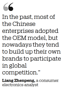 "In the past, most of the Chinese enterprises adopted the OEM or original equipment manufacturer model, but nowadays they tend to build up their own brands to participate in global competition," Liang said.