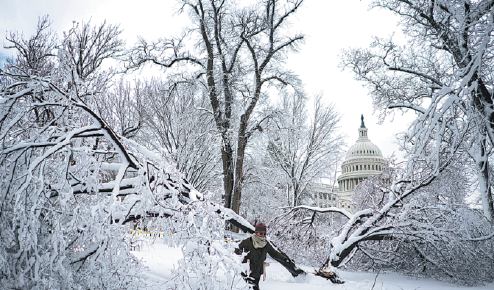 While much of the US mid-Atlantic was caught in the bad weather, conditions were acute in the capital and neighboring states of Maryland and Virginia, where accumulation in some spots topped 30.5 cm, according to meteorologists who described it as the region's biggest snowstorm in at least two years.