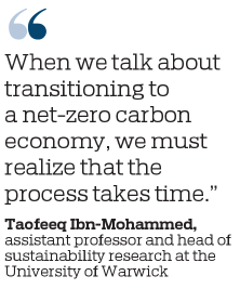 Ibn-Mohammed stresses the need for "a decisive and fundamental structural change to the dynamics of how we live if we were to truly attain a net-zero carbon and resilient economy".