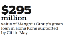 Sustainability is one major focus of Citi's development in China in recent years. The bank helped Chinese mainland dairy giant Mengniu Group get a HK$2.3 billion ($295 million) green loan in Hong Kong in late May, the first of its kind in the Chinese market. The financing was used to improve Mengniu's energy consumption efficiency and production of organic milk.