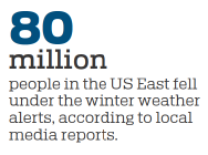In all, more than 80 million people fell under the winter weather alerts, local media reported.