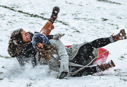 In North Carolina, where some regions saw record snowfalls, two people died on Sunday when they lost control of their car in Raleigh.