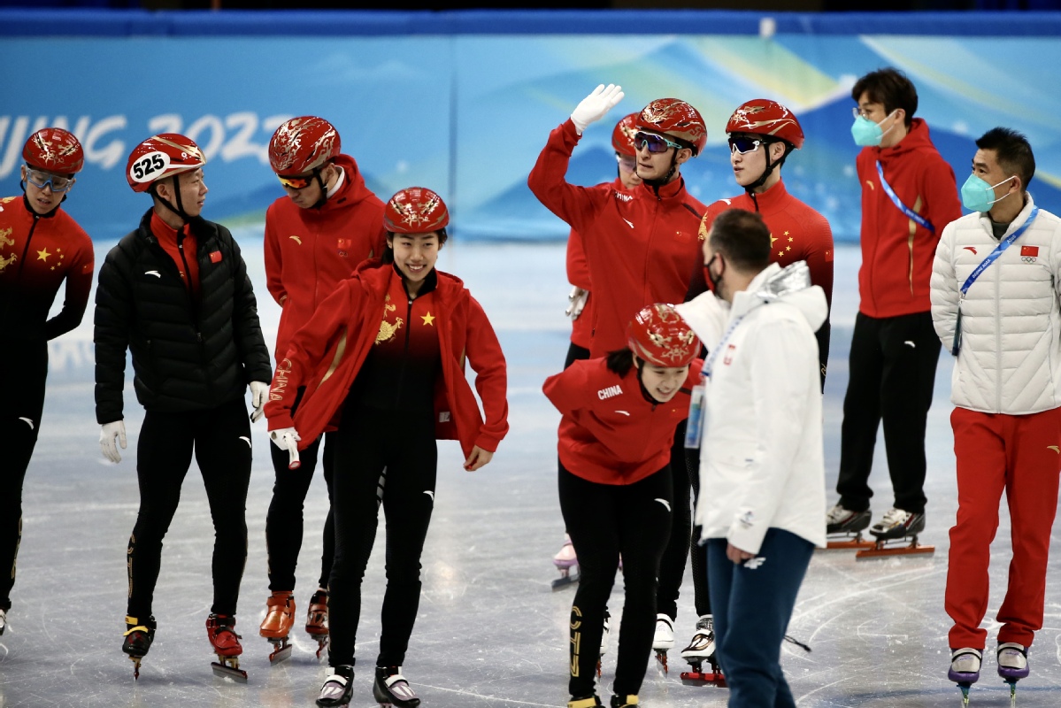 China's short-track speed skating team trains at the Capital Indoor Stadium in Beijing for the upcoming Winter Olympics on Feb 2, 2022. [Photo by Zhang Wei/chinadaily.com.cn]
