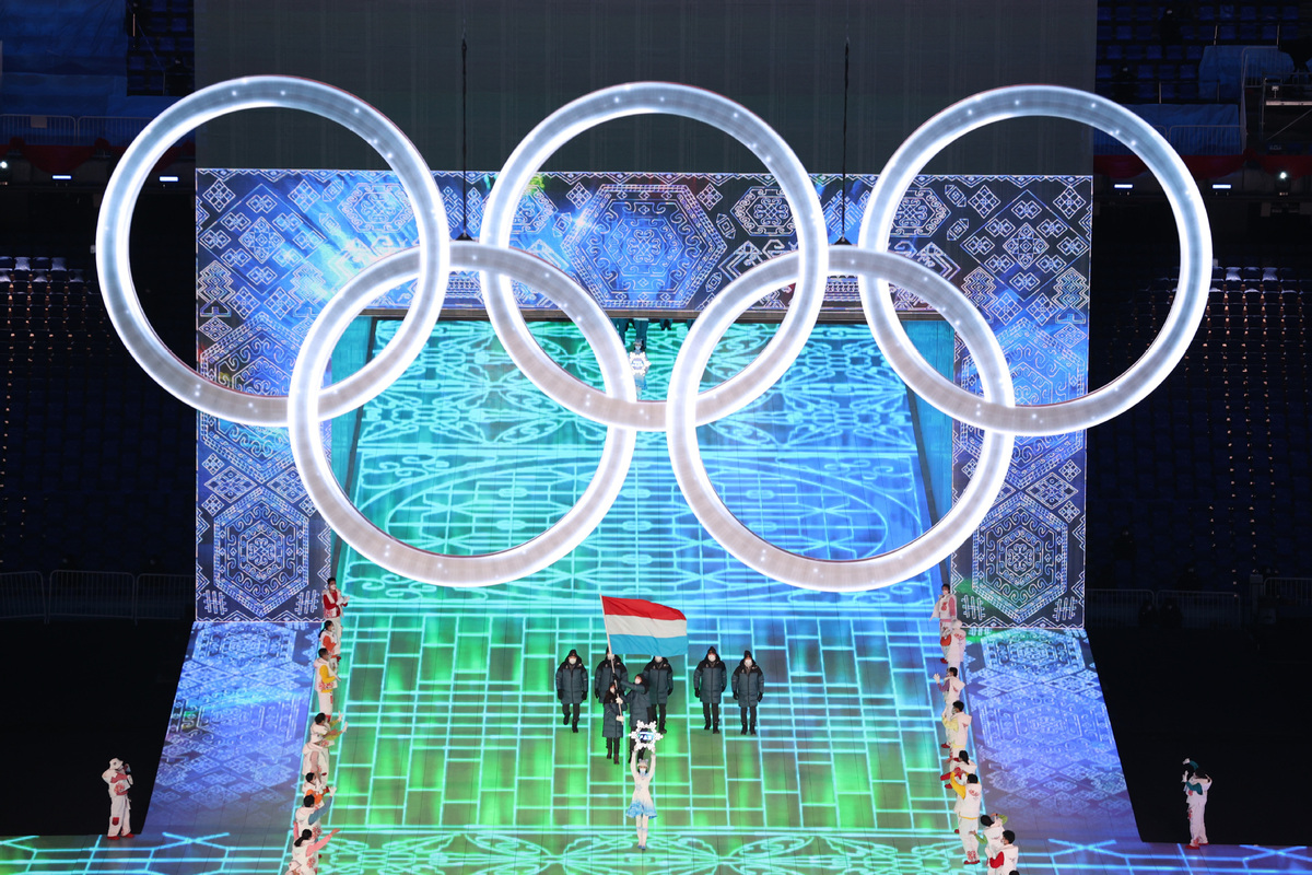 The Olympic delegation of Luxembourg march into the Bird's Nest Stadium in Beijing, Feb 4, 2022. [Photo/Xinhua]