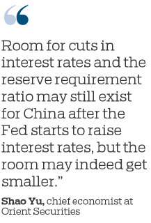 "Room for cuts in interest rates and the reserve requirement ratio may still exist for China after the Fed starts to raise interest rates, but the room may indeed get smaller," said Shao Yu, chief economist at Shanghai-listed Orient Securities.