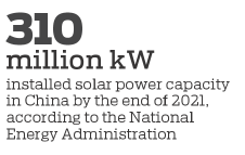 According to the National Energy Administration, by the end of 2021, installed solar power capacity in China, a global leader in photovoltaic product manufacturing, was about 310 million kilowatts, up 20.9 percent year-on-year.