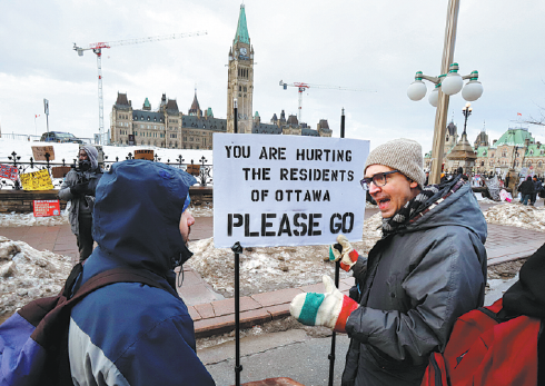OTTAWA-The United States has urged its northern neighbor to use its federal powers to end the truck blockade protesting Canada's COVID-19 restrictions, as the bumper-to-bumper demonstration forced auto plants on both sides of the border to shut down or scale back production.