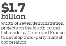 The country's top economic regulator said the forms of cooperation will include joint investment, as well as Chinese engineering procurement and general construction contracting and French investment and development, which will have a positive effect on economic and social development in third-party markets.