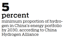 The China Hydrogen Alliance, a government-supported industry group, predicts that hydrogen will make up at least 5 percent of China's energy portfolio by 2030, which is in line with analysis by energy giant Shell.