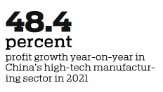 Rapid development in emerging industries has led to the industrial structure upgrade and contributed significantly to the annual profit rise of this sector in 2021. Last year, the high-tech manufacturing sector maintained rapid profit growth, rising 48.4 percent from the previous year.