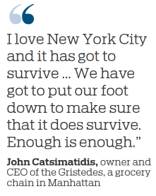 John Catsimatidis, owner and CEO of the Gristedes, a grocery chain in Manhattan, told the Daily Mail that the thieves are not hungry vagrants, but "professional criminals" who often travel to the city from other states, where they cannot get away with such crimes.