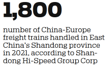 More than 1,800 China-Europe freight trains were handled in East China's Shandong province in 2021 alone. Through a total of 51 international train routes, goods from Shandong can reach 54 cities and 23 countries along the Belt and Road Initiative, the group said.