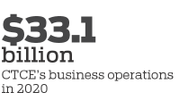 CTCE's business operations reached a value of 209.6 billion yuan ($33.1 billion) in 2020, with a revenue of 113 billion yuan, Han said. Between 2016 and 2020, the company logged 747.5 billion yuan in business and recorded a revenue of 404.8 billion yuan.