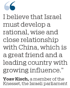 "I believe that Israel must develop a rational, wise and close relationship with China, which is a great friend and a leading country with growing influence," said Yoav Kisch, a member of the Knesset, the Israeli parliament.