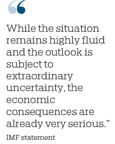 "While the situation remains highly fluid and the outlook is subject to extraordinary uncertainty, the economic consequences are already very serious," it said in a statement on Saturday after a board meeting chaired by IMF Managing Director Kristalina Georgieva.
