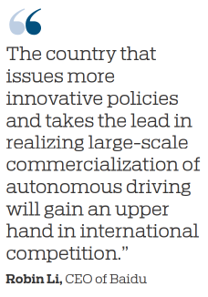 "The country that issues more innovative policies and takes the lead in realizing large-scale commercialization of autonomous driving will gain an upper hand in international competition," Li said.