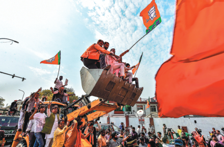 Hundreds of BJP supporters had begun to arrive outside the party's office in Lucknow, the state's capital, even before the poll update was announced. Jubilant party supporters began dancing in the streets and celebrating across the state.