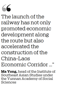 Ma Yong, head of the Institute of Southeast Asian Studies under the Yunnan Academy of Social Sciences, said, "The launch of the railway has not only promoted economic development along the route but also accelerated the construction of the China-Laos Economic Corridor and the community of a shared future between the two sides."