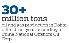 Oil and gas production in Bohai oilfield exceeded 30 million tons last year, which is half of the country's crude oil output increase in 2021, it said.