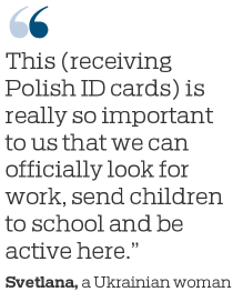 Svetlana, a Ukrainian woman from Ivano-Frankivsk who has lived and worked in Poland for more than 10 years, has had relatives come now to Poland. She said receiving Polish ID cards will make a huge difference for the refugees.