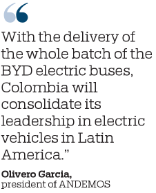 "With the delivery of the whole batch of the BYD electric buses, Colombia will consolidate its leadership in electric vehicles in Latin America," said Olivero Garcia, the president of ANDEMOS.