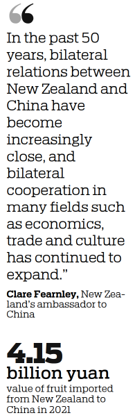 "In the past 50 years, bilateral relations between New Zealand and China have become increasingly close, and bilateral cooperation in many fields such as economics, trade and culture has continued to expand," said Clare Fearnley, New Zealand's ambassador to China.